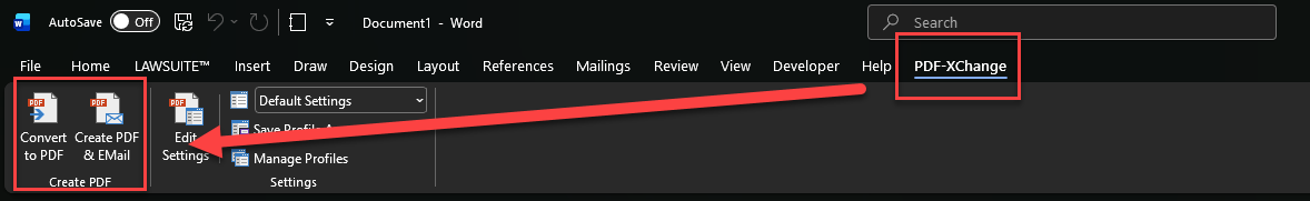 - "Print to PDF" is replaced by a tab at the top called "PDF-XChange" and has a "Convert to PDF" button on the left: